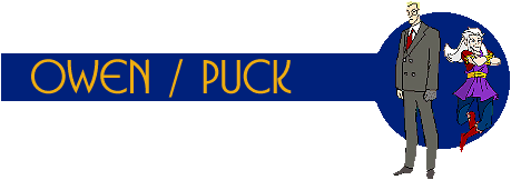 It wasn’t until Oberon and Titania tried to take the Xanatos’s child, Alexander, that the major-domo fully revealed his past. As Puck, he was fascinated by Titania/Anastasia’s choice of a human husband over a fairie one. He decided to conduct his own human study. Having for centuries played the part of the trickster he decided to go to the opposite extreme and play the straight man for once. He decided to model himself after the straightest man he knew, Preston Vogel, Halcyon Renard’s second in command. After working for Xantos for several years he revealed his secret to him and offered him a choice. A wish or a lifetime of service as Owen. Xanatos chose Owen. Impressed by Xanatos’s forgoing of instant gratification over the long term benefits to be gained from Owen, he decided to honor the deal. He even went so far as to defend the Xanatos’s child against his King and Queen. As a result he was banished from his home on Avalon forever, and stripped of his powers except when acting as tutor to Alexander. As the sentence came down from Oberon, Puck was upset as he’d only been hoping for a few more decades of living in the mortal world, he didn’t wish to be cut off forever from his own kind. But he quickly controlled himself becoming the implacable, imperturbable Owen. A move that seemed to shock Oberon and further impress Xanatos. Fortunately for Puck, Oberon’s rule seems to be easily bendable, allowing him to use his powers whenever Alexander is even minimally involved. It was in this fashion that Owen helped Xanatos repay the Manhattan clan by separating Coldstone’s three personalities into the two steel clan robots and the Coldstone body.