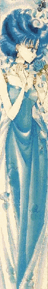 But Amy never forgets her goal of becoming a doctor like her mom. She also finds time to help out the other scouts with their studying. She also spends a great deal of time studying their foes to find their weak spots. She uses her VR Visor and mini-computer to discover negaverse plots and it helps her to foil them as well. Most of this Sailor's special attacks are not to physically damaging, so she must use them cunningly to make them effective. Amy spends a lot of time on school work and scout business. It doesn't leave her a lot of time for socializing but it did get her one admirer, a young man named Greg, who thought she was just wonderful. Greg knew she was Sailor Mercury because he was born with the ability to know the future. Greg didn't think himself worthy of Amy, and Amy was to shy to admit she liked him too. She was afraid she'd ruin their friendship. It took Greg having his life threatend by the negaverse to prove that she did care for him and just how powerful she could be on her own. She defeated Prince Darien (while he was brainwashed by the negaverse) all on her own. Besides her mind, visor and mini computer, Sailor Mercury does have special powers to help her defeat the negaverse. She says these phrases to activate her powers: |