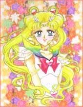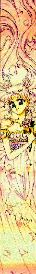 Sailor Moon is actually Serena (Bunny in the Mixx-zine translation of the manga, Usagi Tusinko in the orginal Japanese), your normal everyday teenager who'd much rather be eating, sleeping or chasing boys than studying or fighting evil. But when Luna finds her and tells her her destiny is to be the Sailor Scout of the Moon and the protector of the Earth she is reluctantly prodded into the role. Sailor Moon's greatest asset and what makes her most powerful of all is her hope and belief that love will find a way to make everything right no matter how bad it gets. Serena is a true friend, and has, and would again, sacrifice everything to protect her family and friends. She always manages to see the good in people (eventually) even if they've been really nasty to her. Serena was actually the Moon Princess of the Silver Millenium, a thousand years ago. Queen Beryl destroyed the Moon Kingdom and the only way Queen Serenity could save her daughter and the other children of the moon empire was to send them, their cat guardians, and their foes in the negaverse into the future to be reborn. In the future, Serena will become Neo-Queen Serenity, the ruler of a new Utopia of peace. Sailor Moon is deeply in love with Tuxedo Mask (Tuxedo Kamen in the orginal Japanese). It is a romance that has spanned centuries, begining with Princess Serena falling in love with a young Prince Dairen of Earth, continuing in the present between Serena and Darien, and ending in the future when he rules as Neo-King Endiymon beside her. |